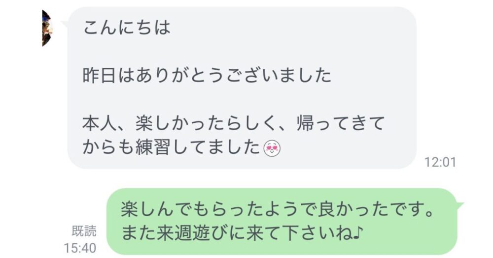 後日、お母様から公式LINEにお返事がありました✨